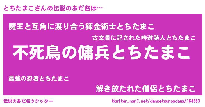 | ヒーロー風カッコイイあだ名 | 『スーパートチタマコ』『仮面トチダー』 |