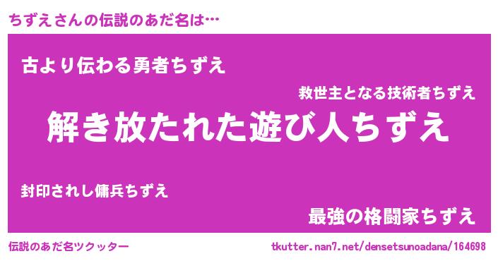 | ポケモン風あだ名 | 『チズゴンZ』『ヒチズエ』『ゼニチズ』 |