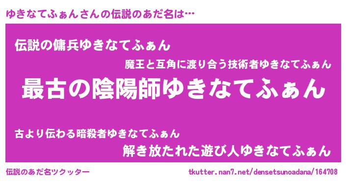 | 意味不明あだ名 | 『住所不定無職ゆきなてふぁん(86歳)』 |