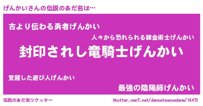 | ヒーロー風カッコイイあだ名 | 『スーパーゲンカイ』『仮面ゲンダー』 |