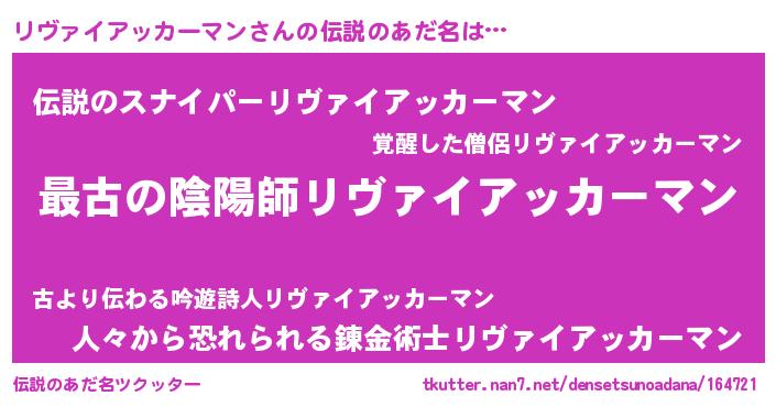 | 欧米人風あだ名 | 『ダレノガレリヴァイアッカーマン』 |