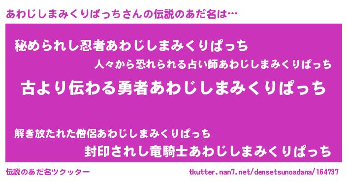 | 意味不明あだ名 | 『永久保存あわじしまみくりぱっち』 |