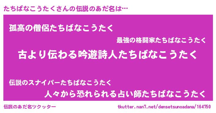 | ヒーロー風カッコイイあだ名 | 『ネオタチバナコウタク』『仮面タチダー』 |