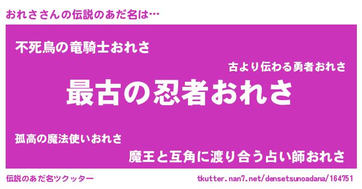 | ヒーロー風カッコイイあだ名 | 『ウルトラおれさマン』『スーパーオレサ』 |