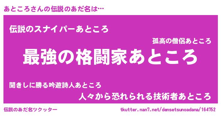 | 女子向けラノベタイトル風あだ名 | 『あところストレイドッグス』 |