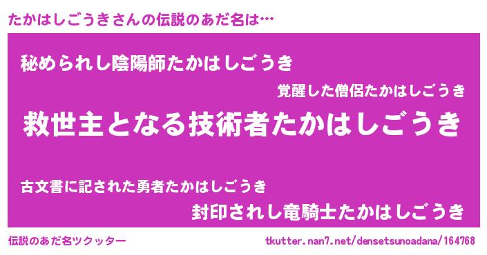 | ヒーロー風カッコイイあだ名 | 『究極戦士タカハシゴウキ』 |