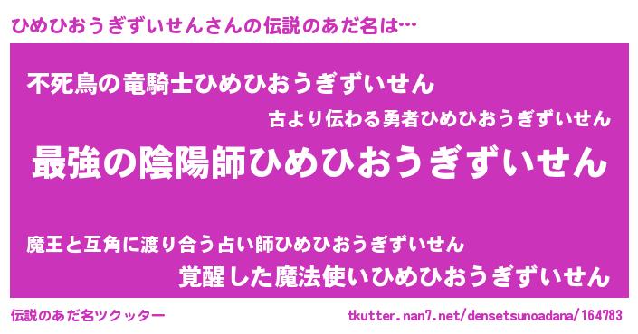 | ヒーロー風カッコイイあだ名 | 『ウルトラひめひおうぎずいせんマン』 |
