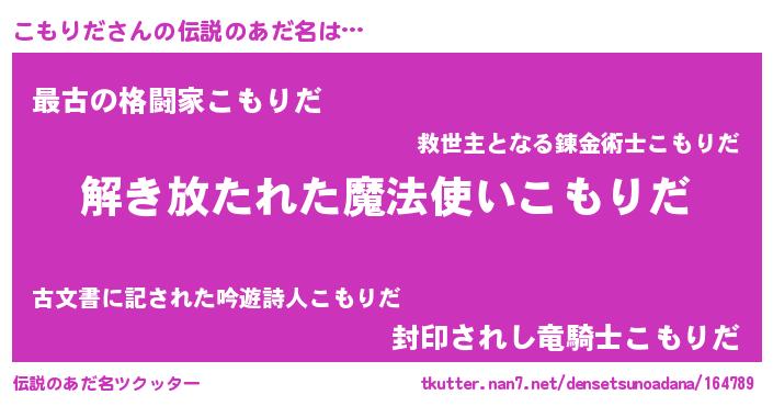 | 意味不明あだ名 | 『とにかく怪しいこもりだ』 |