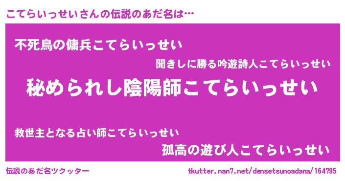 | 意味不明あだ名 | 『こてらいっせいフォーエバー』 |