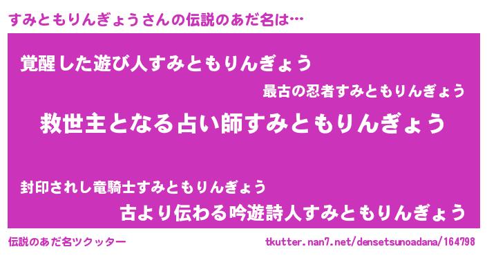 | 意味不明あだ名 | 『住所不定無職すみともりんぎょう(53歳)』 |