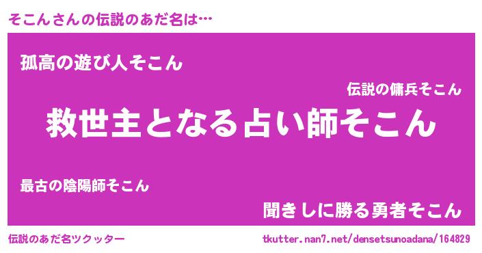 | 女子向けラノベタイトル風あだ名 | 『死神そこんの再婚』『闇のそこん』 |