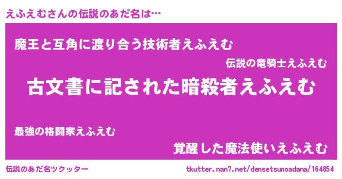 | ヘコむあだ名 | 『えふえむ(苦笑)』『えふ太郎』 |