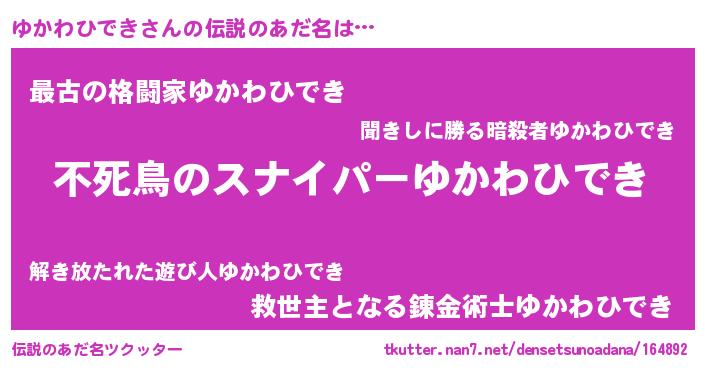 | 胡散臭い通販商品みたいなあだ名 | 『モテモテ間違いなし霊験あらたかなお札…その名も「ゆかわひでき」』 |