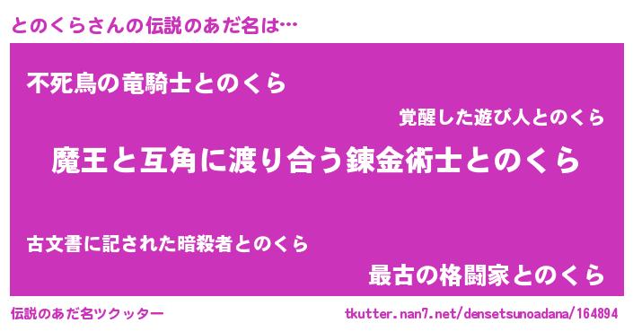 | 女子向けラノベタイトル風あだ名 | 『とのくら恋絵巻』『闇のとのくら』 |