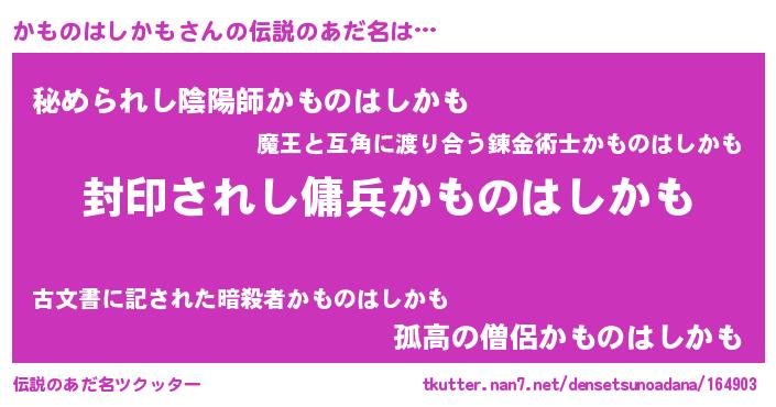 | 胡散臭い通販商品みたいなあだ名 | 『億万長者になれる水晶球…その名も「かものはしかも」』 |