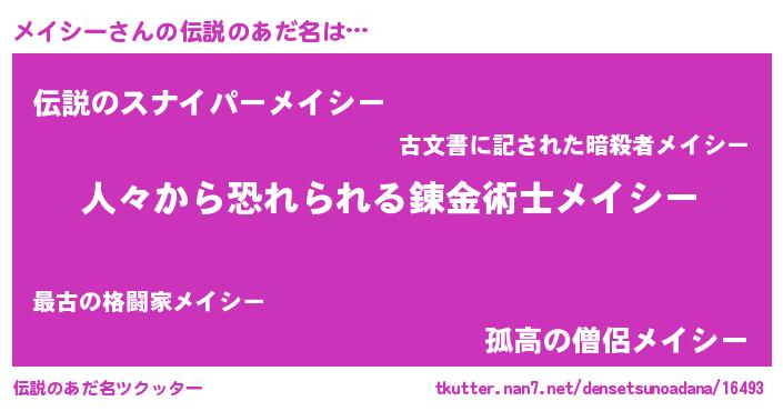 | ヒーロー風カッコイイあだ名 | 『友情の使者メイシー』『銀牙騎士メイ』 |