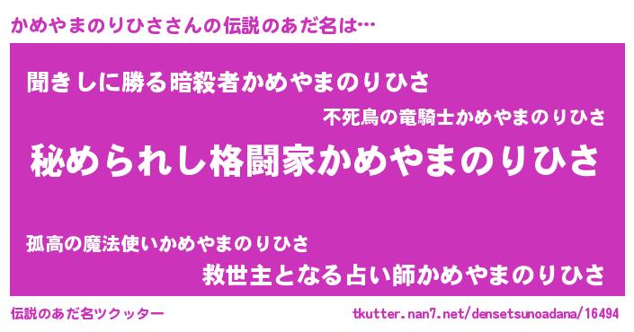 | 意味不明あだ名 | 『自称かめやまのりひさ』 |