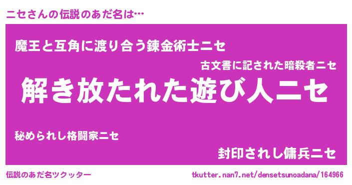 | 意味不明あだ名 | 『自称ニセ』『住所不定無職ニセ(95歳)』 |