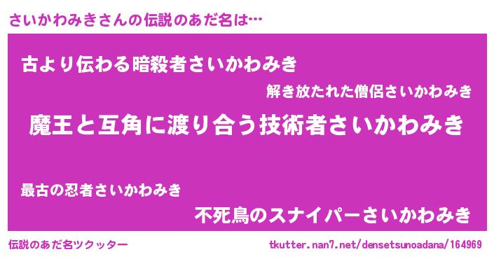 | 意味不明あだ名 | 『住所不定無職さいかわみき(7歳)』 |