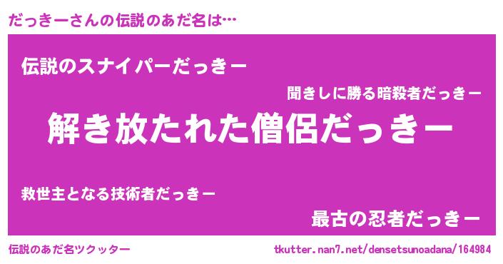 | 意味不明あだ名 | 『とにかく怪しいだっきー』 |