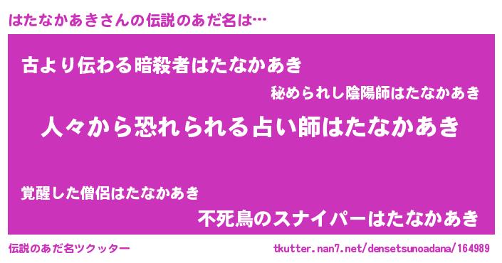 | ヘコむあだ名 | 『はたなかあき(笑)』『はたふぇ~』 |