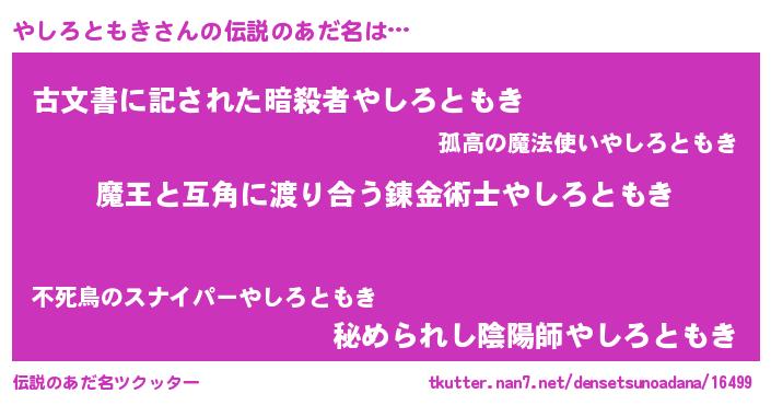 | ヒーロー風カッコイイあだ名 | 『友情の使者やしろともき』 |