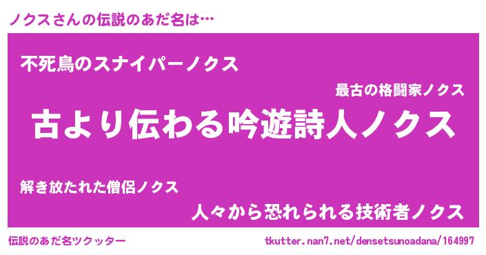 | 意味不明あだ名 | 『なめこ科ノクス属』『永久保存ノクス』 |