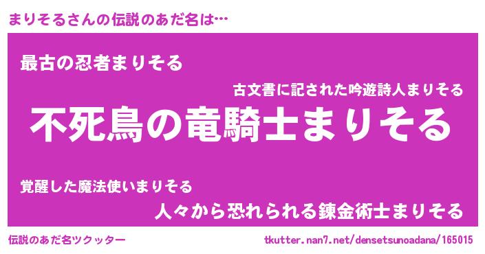 | 男性向けラノベタイトル風あだ名 | 『まりそるに滅ぼされるだけの簡単なお仕事です』 |