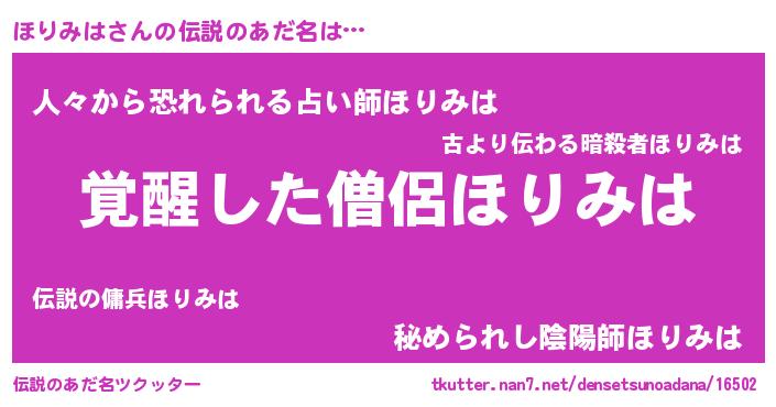 | ヒーロー風カッコイイあだ名 | 『天弓騎士ホリ』『正義の使者ほりみは』 |