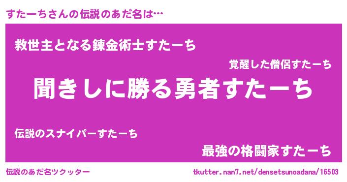 | 意味不明あだ名 | 『住所不定無職すたーち(95歳)』 |