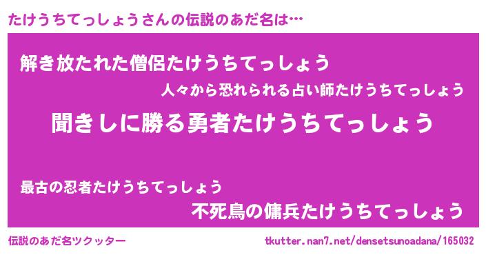 | 男性向けラノベタイトル風あだ名 | 『タケウチテッショウスレイヤー』 |