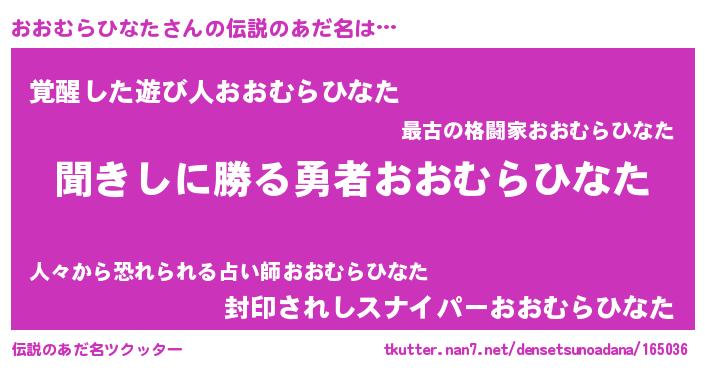 | 意味不明あだ名 | 『住所不定無職おおむらひなた(85歳)』 |