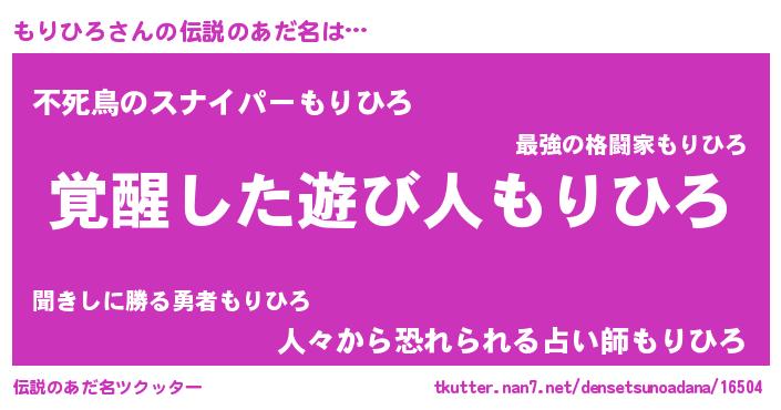 | ヒーロー風カッコイイあだ名 | 『幻影騎士モリ』『スーパーモリヒロ』 |