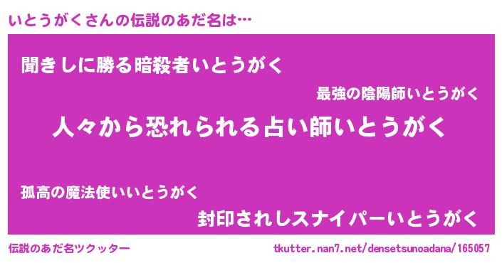 | ヒーロー風カッコイイあだ名 | 『正義の使者いとうがく』『仮面イトダー』 |