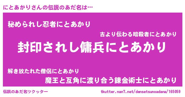 | 恥ずかしいあだ名 | 『プリティーにとあかり』『にとっちょ』 |