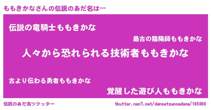 | 肩書あだ名 | 『ももきかな助教授』『ももきかな中将』 |