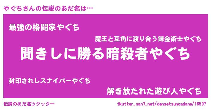 | 男性向けラノベタイトル風あだ名 | 『ヤグチスレイヤー』 |