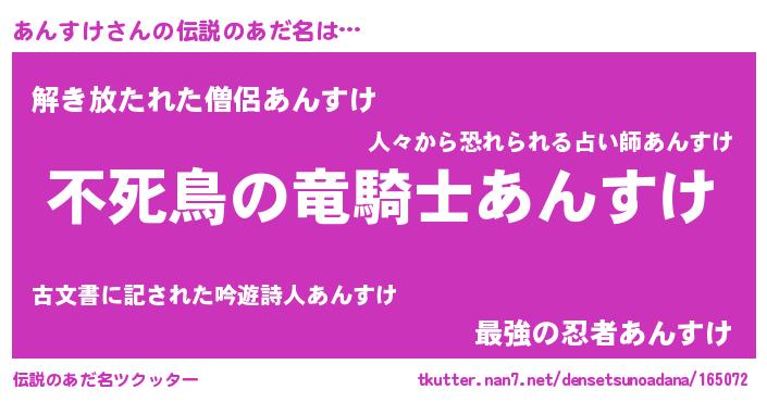 | 意味不明あだ名 | 『たけのこ科あんすけ属』『自称あんすけ』 |