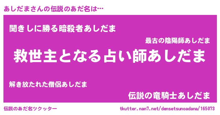 | ヒーロー風カッコイイあだ名 | 『慈愛の使者あしだま』『ネオアシダマ』 |