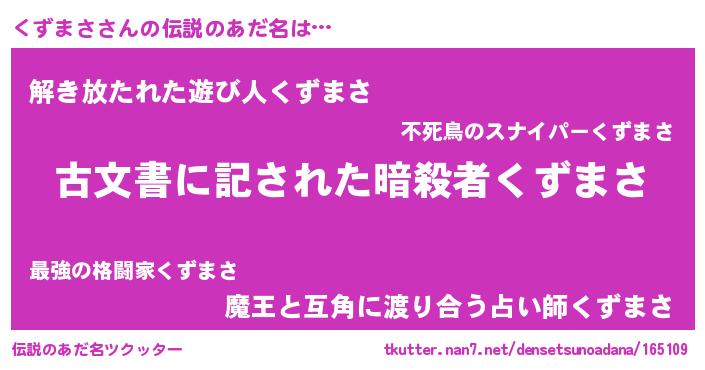 | 意味不明あだ名 | 『永久保存くずまさ』『自称くずまさ』 |