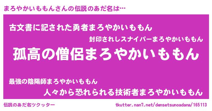 | ヒーロー風カッコイイあだ名 | 『黄金騎士マロ』『ネオマロヤカイモモン』 |