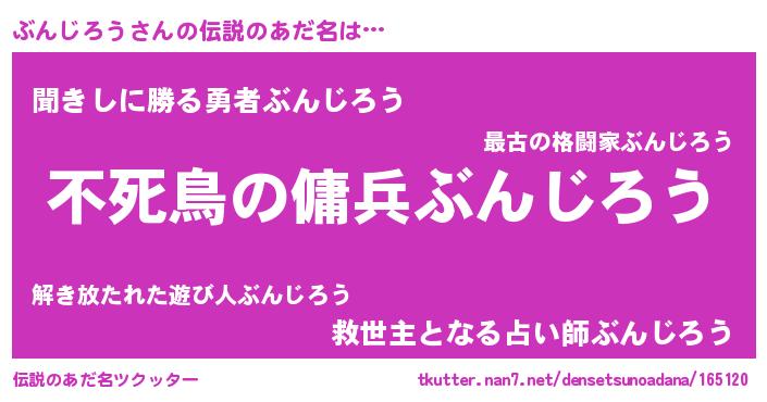 | ヘコむあだ名 | 『ぶんにゅー』『ぶんじろう(遠い目)』 |