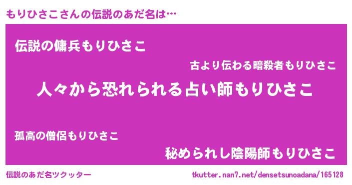 | ヒーロー風カッコイイあだ名 | 『正義の使者もりひさこ』『仮面モリダー』 |