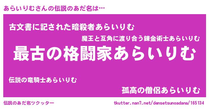 | 意味不明あだ名 | 『あらいりむフォーエバー』 |