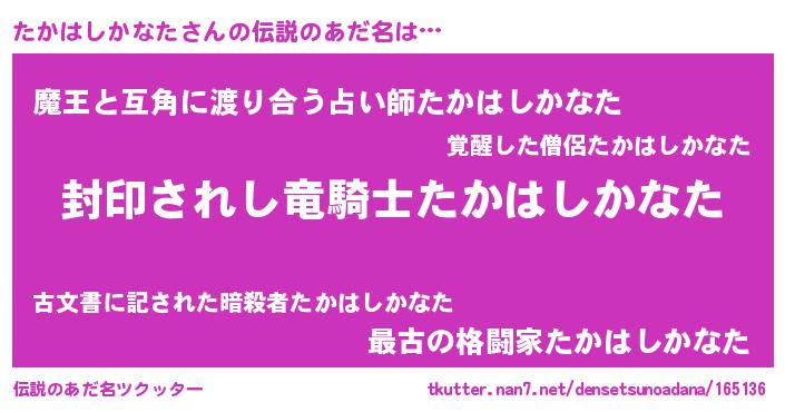 | 意味不明あだ名 | 『自称たかはしかなた』 |