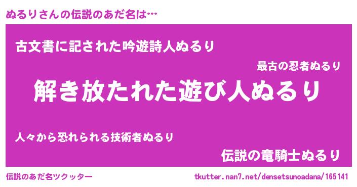 | ヒーロー風カッコイイあだ名 | 『仮面ヌルダー』『天弓騎士ヌル』 |