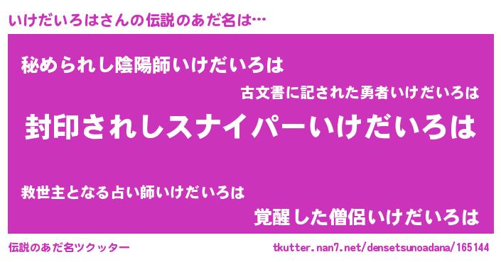 | 肩書あだ名 | 『いけだいろは上級大将』 |