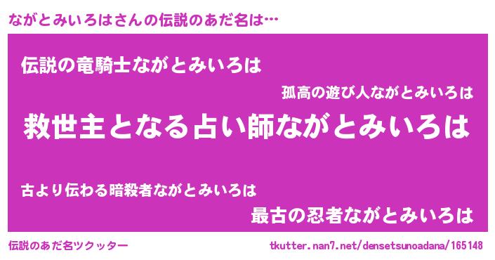 | ヒーロー風カッコイイあだ名 | 『慈愛の使者ながとみいろは』 |