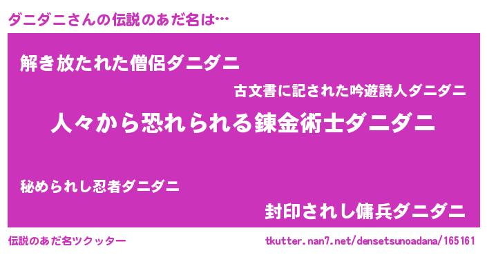 | ヒーロー風カッコイイあだ名 | 『友情の使者ダニダニ』『銀牙騎士ダニ』 |