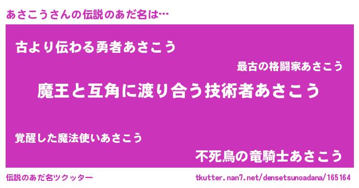 | ヒーロー風カッコイイあだ名 | 『愛の使者あさこう』『ネオアサコウ』 |
